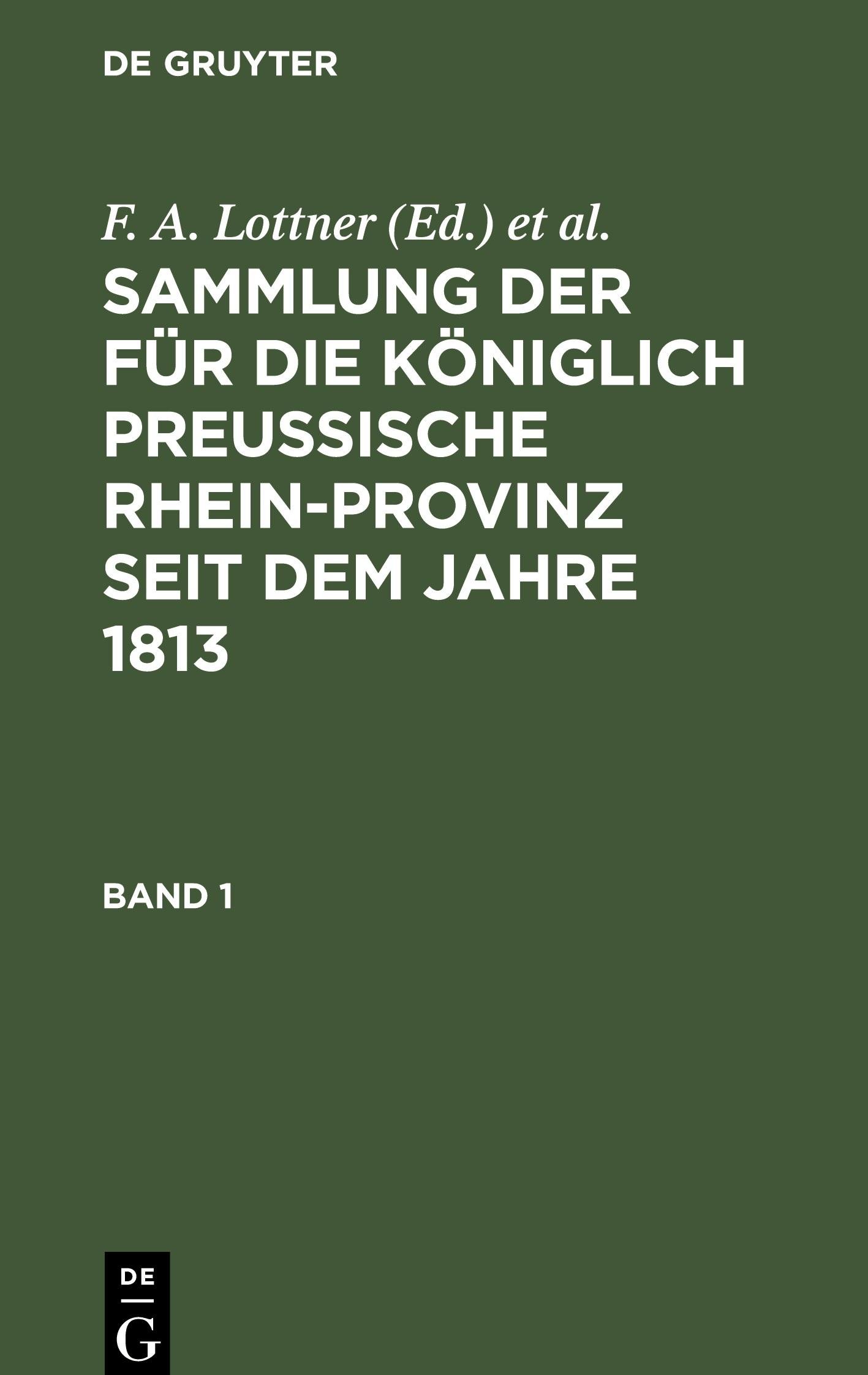 Sammlung der für die Königlich Preussische Rhein-Provinz seit dem Jahre 1813, Band 1, Sammlung der für die Königlich Preussische (niemiecki)