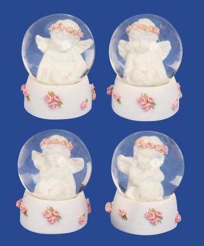 Anděl s růžovým věnečkem sněžítko