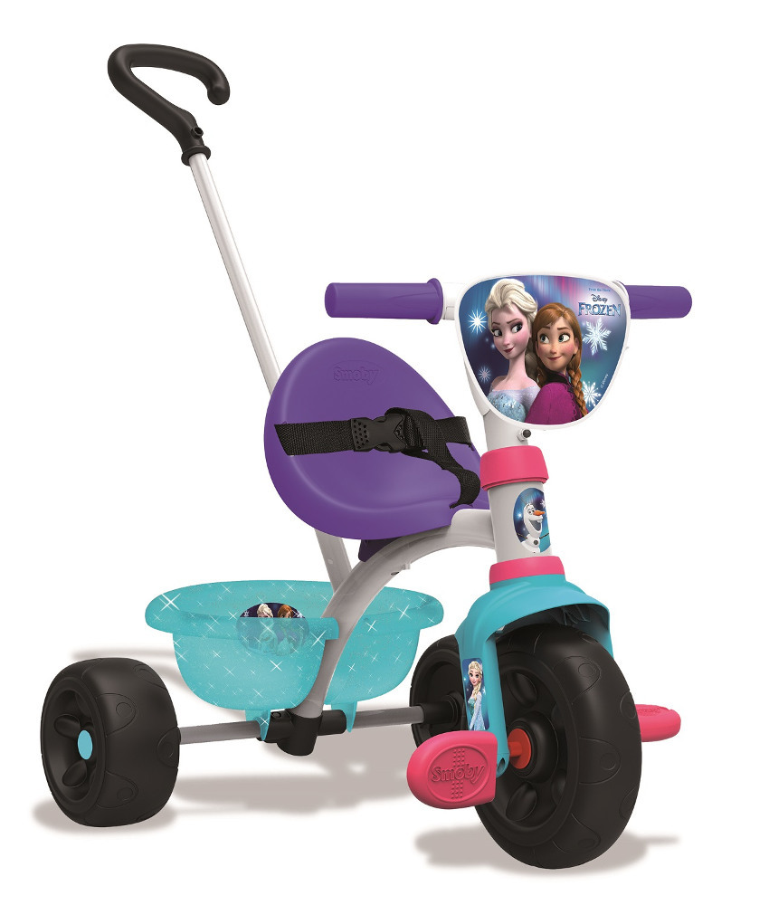 Šlapací tříkolka s Disney s motivem princezen z pohádky Ledové království. Kovový rám, odnímatelná vodící tyč a bezpečnostní pás. Výklopný plastový košík. Možnost zablokování šlapadel.Nastavitelná vzdálenost sedáku. Velikost: 68 x 52 x 52 cm. Hmotnost: 3,45 kg. przeczytaj całość