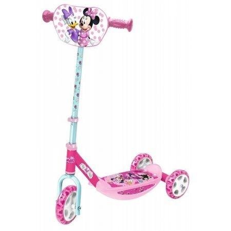 Koloběžka s motivem Minnie má kovový rám, výškově nastavitelná řídítka (67 a 70 cm), 3 kolečka pro lepší stabilitu. Max. nosnost 20 kg. Rozměry: 55 x 32 x 70 cm. przeczytaj całość