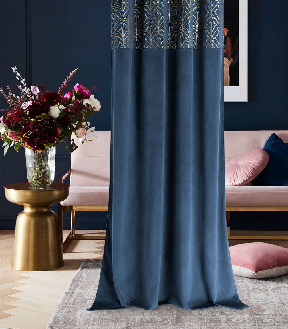 Dekorační vzorovaný velvet závěs s kroužky BLISSY tmavě modrá 140x250 cm (cena za 1 kus) MyBestHome