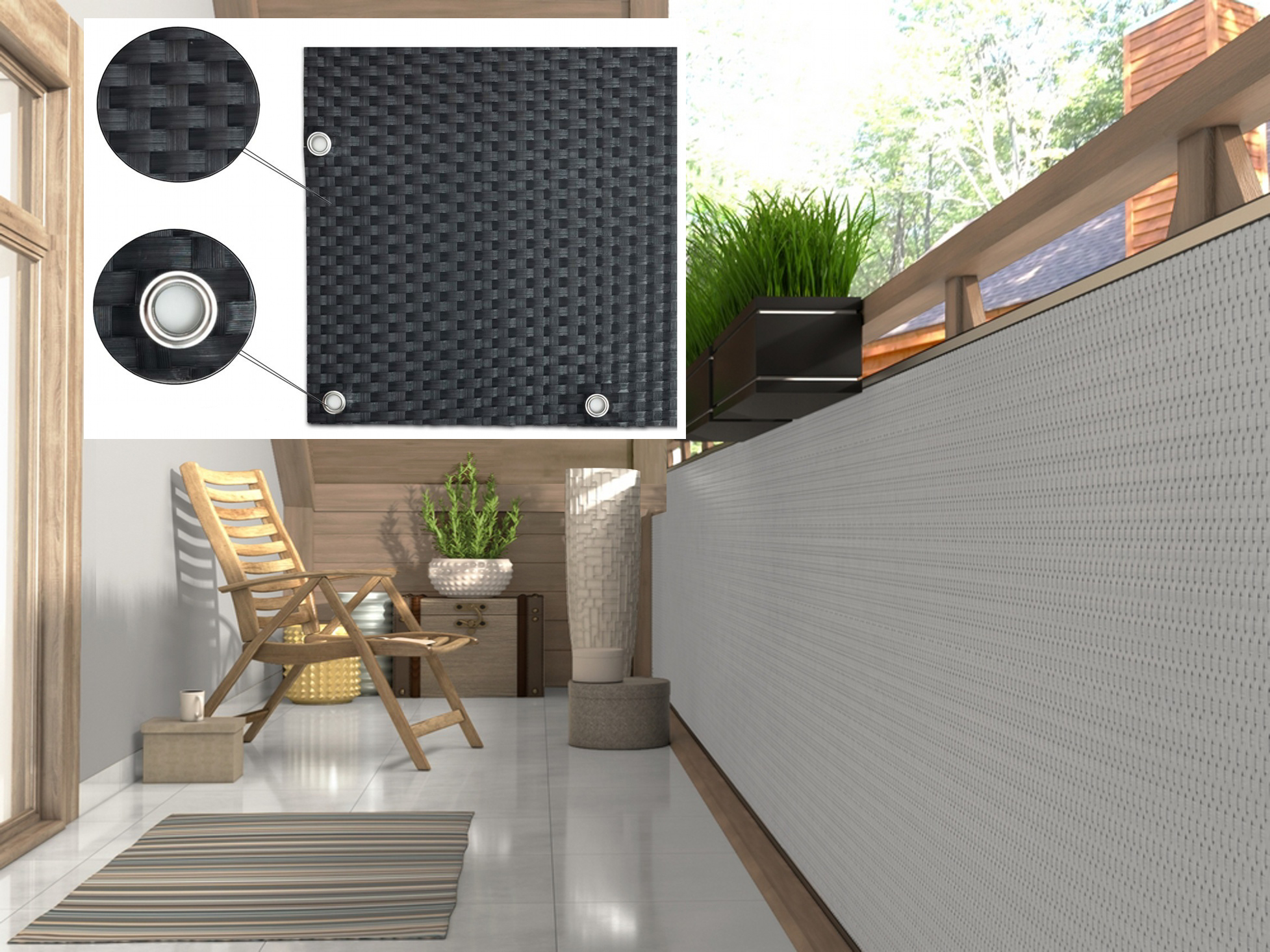 Balkonová ratanová zástěna s očky MALMO, tmavě šedá, výška 100 cm šířka 500 cm MyBestHome