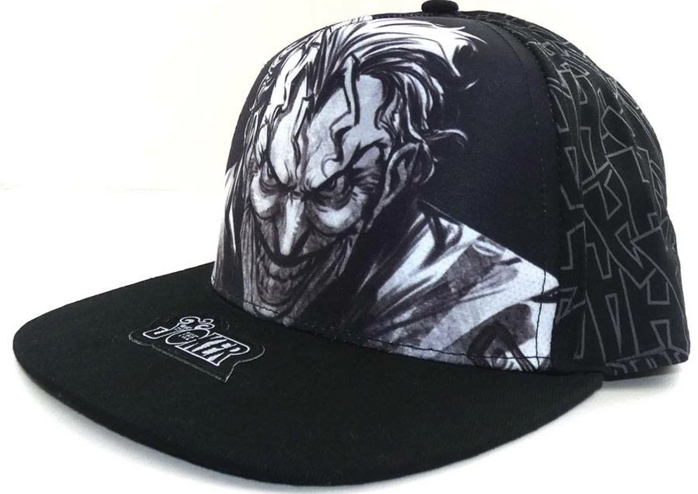 Černá snapback kšiltovka inspirovaná superpadouchem jménem Joker.