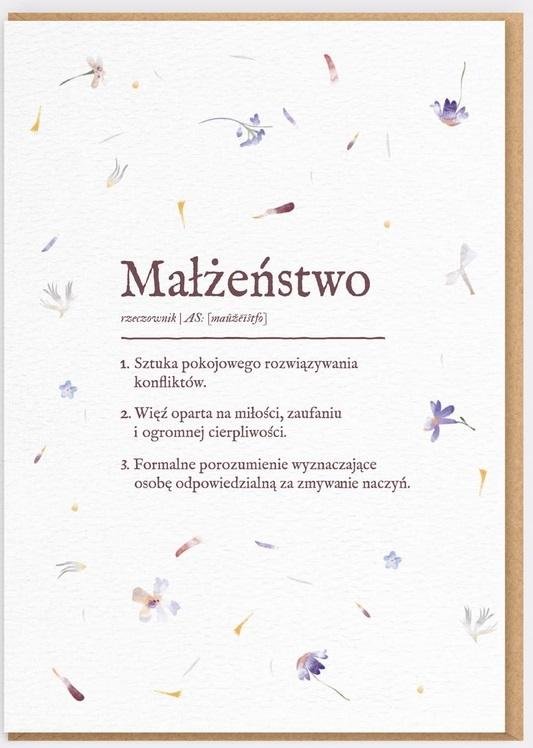 Małżeństwo: Sztuka pokojowego rozwiązywania konfliktów. Więź oparta na miłości, zaufaniu i ogromnej cierpliwości. Formalne porozumienie wyznaczające osobę odpowiedzialną za zmywanie naczyń.Niezależnie od tego, która definicja małżeństwa najbardziej pasuje do bliskiej Ci pary młodej,...