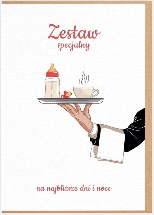 Zestaw specjalny, a raczej zestaw do zadań specjalnych! Bo od teraz każda codzienna i jak dotąd banalna czynność będzie wymagała specjalnych umiejętności. Spróbuj się wyspać i wypić ciepłą kawę!Kartka okolicznościowa ZESTAW SPECJALNY poleca się jako dodatek do prezentu dla przyszłych rodziców....