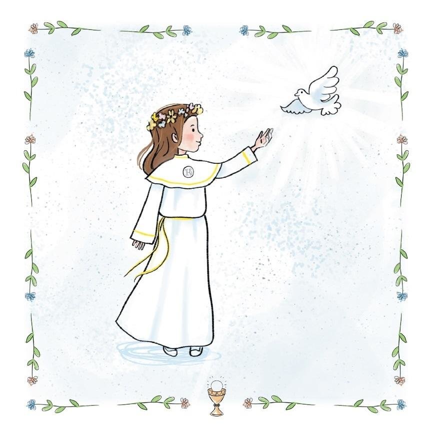 Kartka okolicznościowa z okazji Pierwszej Komunii Świętej zaprojektowana przez Aleksandrę Makowską.W środku miejsce na wpisanie życzeń.Wydrukowana na wysokiej jakość papierze 300 g.Kartka sprzedawana z kopertą w kolorze bieli. przeczytaj całość
