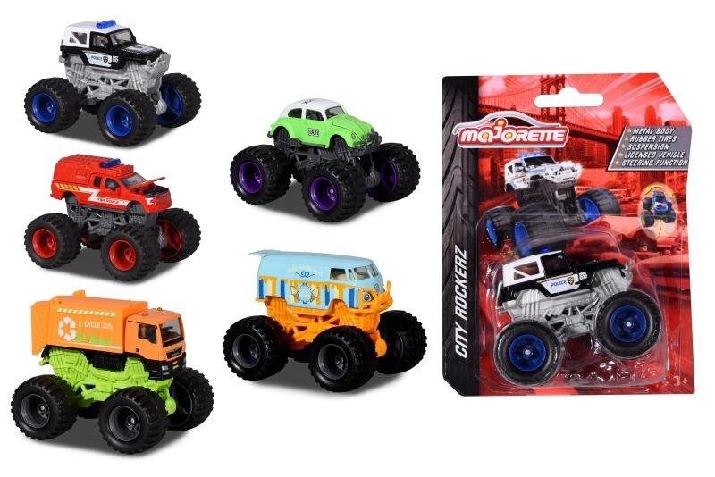Mix wzorów. Towar wysyłany losowo.Znane pojazdy miejskie o monstrualnym wyglądzie. W tej kolekcji znajdują się policja, straż pożarna, taksówka, śmieciarka i pojazd z lodami jakociężarówka na ponadwymiarowych monstrualnych oponach. Modele takie jak Ford Raptor, Jeep Wrangler, VW Beetle, VW T1 i...