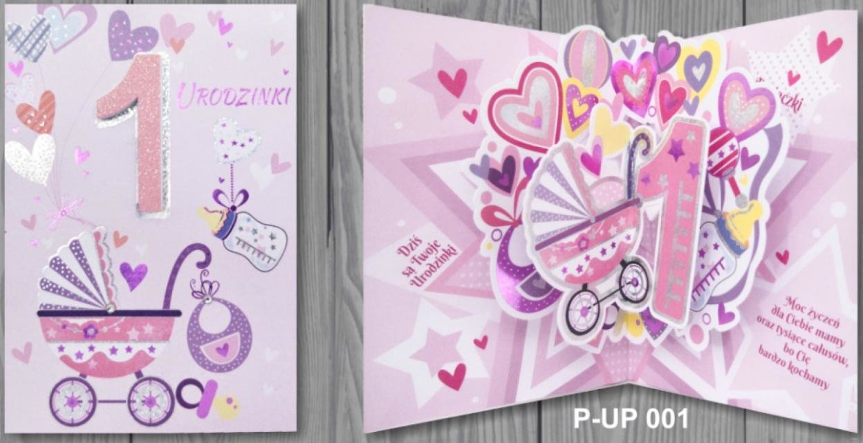 Karnet z kopertą Przestrzenny Premium B6 Roczek dziewczynka wózek P-UP-001 Panorama przeczytaj całość