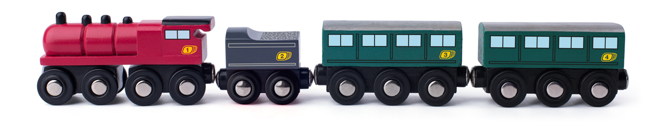 Tato parní lokomotiva má přídavný vozík s uhlím a dva osobní vagony. Je v designu Woody a je kompatibilní se všemi našimi i ostatními vláčkodráhami dostupnými na našem trhu. Jednotlivé vagony jsou spojeny magnetem. Věk: 3+ | Rozměr: 34 cm przeczytaj całość