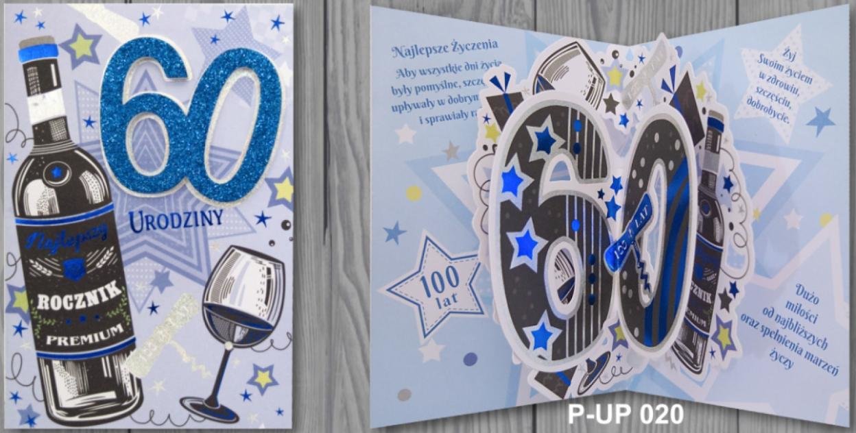 Karnet z kopertą Przestrzenny Premium B6 Urodziny 60 mężczyzna P-UP-020 Panorama przeczytaj całość