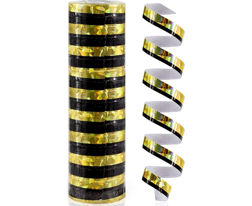 Opakowanie : 24 szt. Serpentyna holograficzna w kolorze złoto-czarnym. W jednej dużej rolce jest aż 18 granatowych krążków serpentyny o długości 4 m każdy. Wielosegmentowa, błyszcząca serpentyna w żywych kolorach. przeczytaj całość