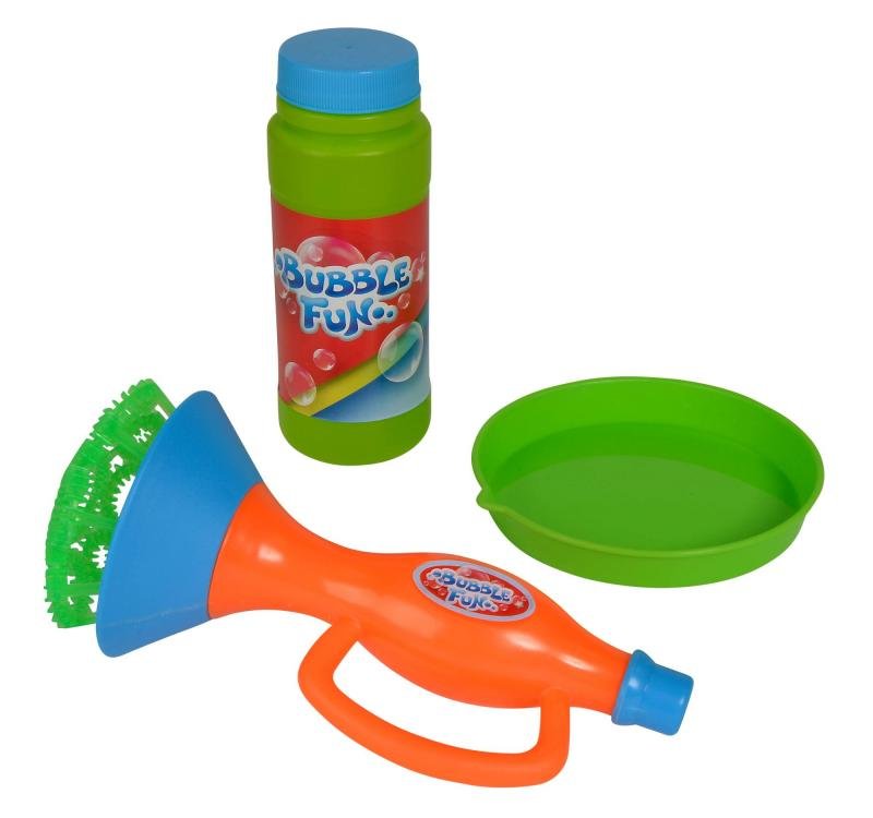 Bublifuk ve tvaru trumpety pro tvoření mnoha bublik najednou, 160 ml roztoku, miska na roztok. Délka 15 cm. przeczytaj całość