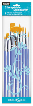 Sada štětců Pébéo 8ks kulaté, ploché a vějíř