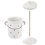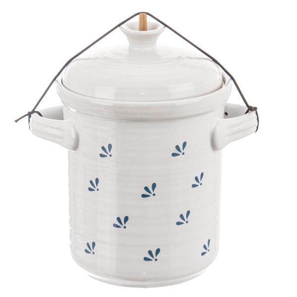 Garnek do kiszenia warzyw pomoże Ci przygotować pikle - warzywa fermentowane przy udziale bakterii mlekowych. Ogólnie rzecz biorąc, kiszone warzywa aktywują układ odpornościowy w walce z bakteriami i wirusami, wzmacniają organizm przeciw infekcjom, wspomagają także tworzenie krwi i hormonów. Zalecana dzienna porcja to 2 łyżki stołowe mieszanki kiszonej. Pikle są więc idealnym dodatkiem do głównego dania lub składnikiem sałatki. Wewnętrzną pokrywkę przyciska się drewnianą pałeczką i gumką cały czas do dna, wywierając nacisk na warzywa. Materiał: szkliwiona ceramika, drewno, guma. Wymiary: pojemność 2,8 l, śr. 17 cm, wys. 19/25 cm. Nadaje się do zmywarki. W opakowaniu znajdują się przepisy.