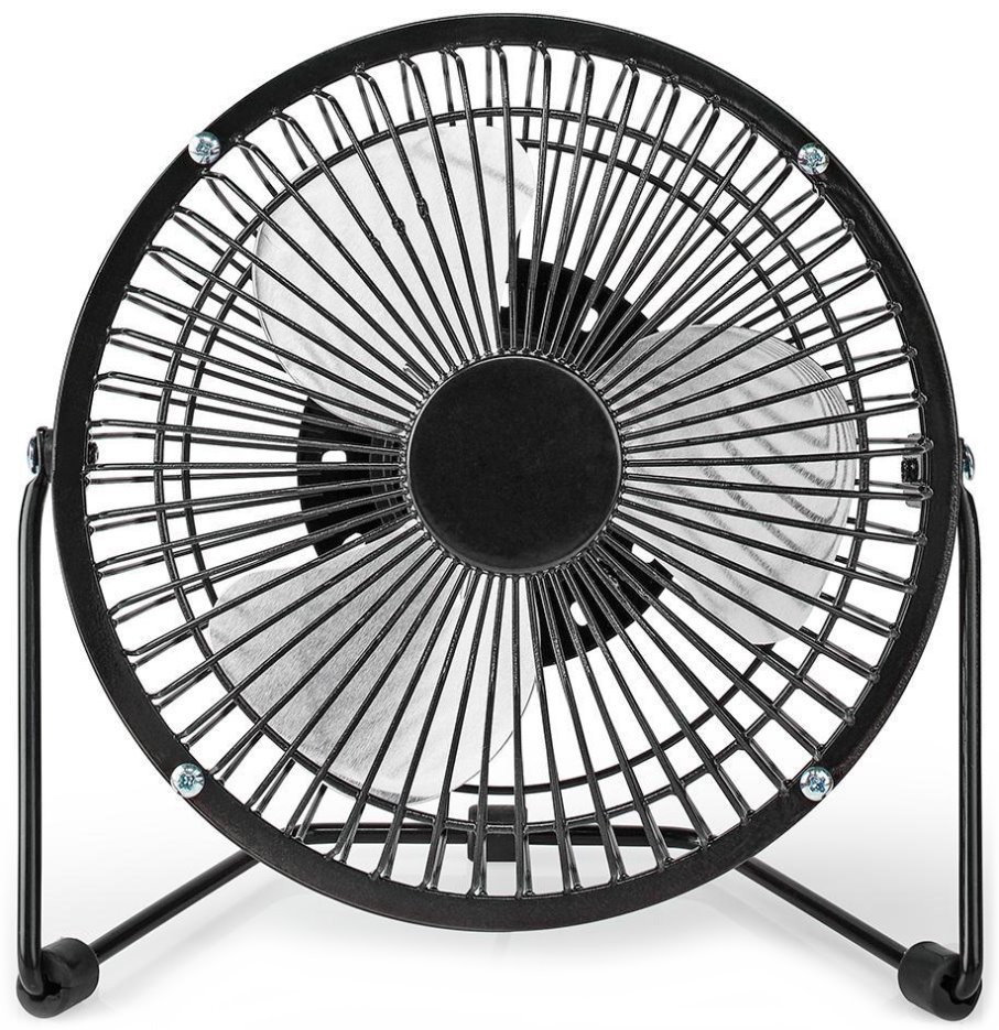 NEDIS stolní ventilátor/ průměr 15 cm/ výkon 3 W/ napájení z USB/ kovový/ černý