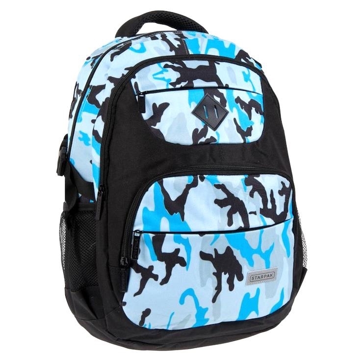Pohodlný a praktický batoh Maskáč. Funguje to dobře ve škole i na výletě. Školní batoh sestává z jedné velké přihrádky na zip a tří dalších kapes na zip vpředu, což výrazně usnadní organizaci prostoru. Na bocích jsou dvě síťované kapsy - ideální na nápoj nebo kapesníky a další zabezpečení v...