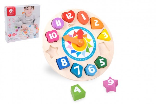 Vkládačka Hodiny dřevo 15ks v krabici 23x23x5cm