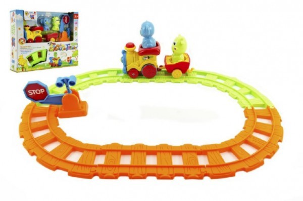 Plastová dráha s mašinkou. Hraje a jezdí, lze měnit rychlost jízdy - vkláček pozná jaké zvířatko na něm sedí. Obsahuje také doplňky - stopku - před kterou vlak zastaví. Vhodné od 24 měsíců. przeczytaj całość