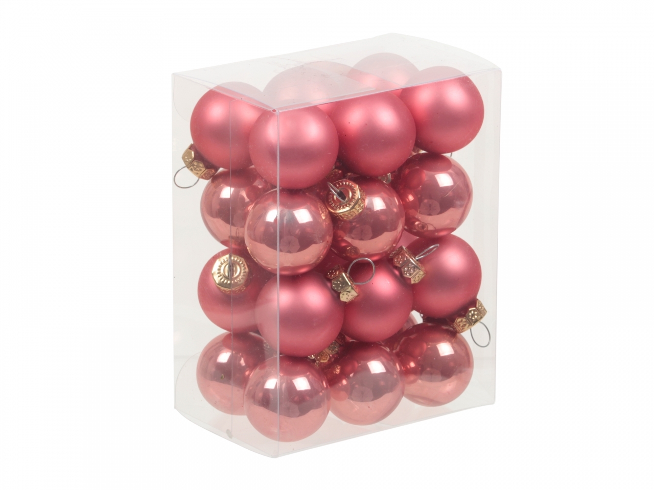 Skleněné baňky camelia 2,5 cm, sada 24 ks