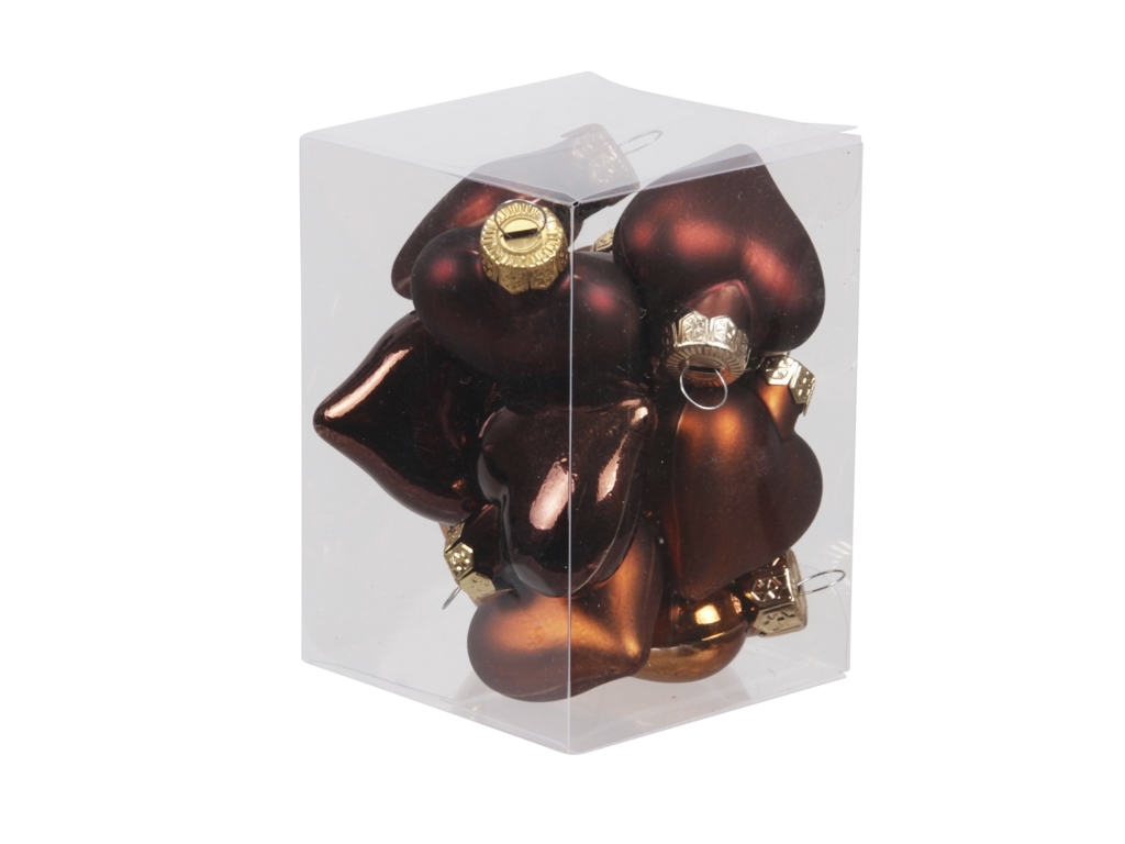 Skleněné baňky - srdce 4 cm, tmavě hnědé, sada 12 ks