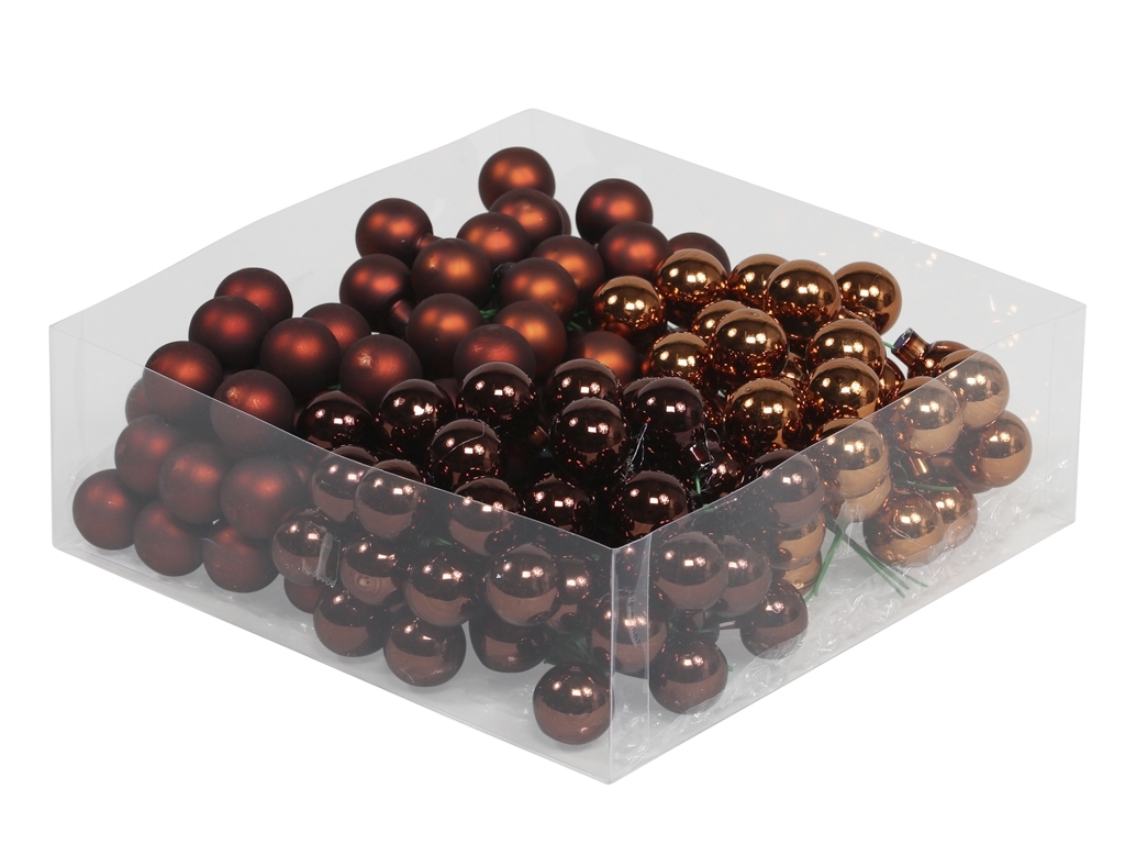 Skleněné baňky tmavě hnědé 2 cm, sada 144 ks