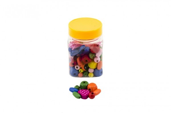 Korálky dřevěné mix barev v plastové dóze 5x9cm