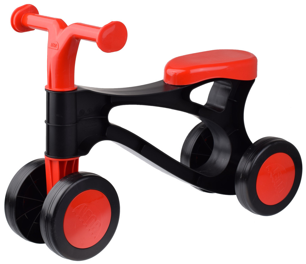 Czerwono/czarne odpychacz (rolocykl) dla dzieci. Stabilny, wysokiej jakości plastik, bardzo bezpieczny. Wymiary 48 × 21 × 34. Nośność 40 kg. Produkt czeski. przeczytaj całość