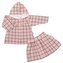 2-dílný komplet pro holčičku české značky New Baby Cool Girls. Komplet se skládá z mikinky a sukýnky. Mikinku Áčkového střihu zdobí praktická kapuce podšitá bavlněnou podšívkou a stále moderní kostkovaný vzor. Zapínání na cvočky po celé délce. Kolový stříh sukýnky zdobí širší pás s gumičkou. Krásný komplet do šatníku malých parádnic. Materiál: 95% bavlna, 5% elastan.