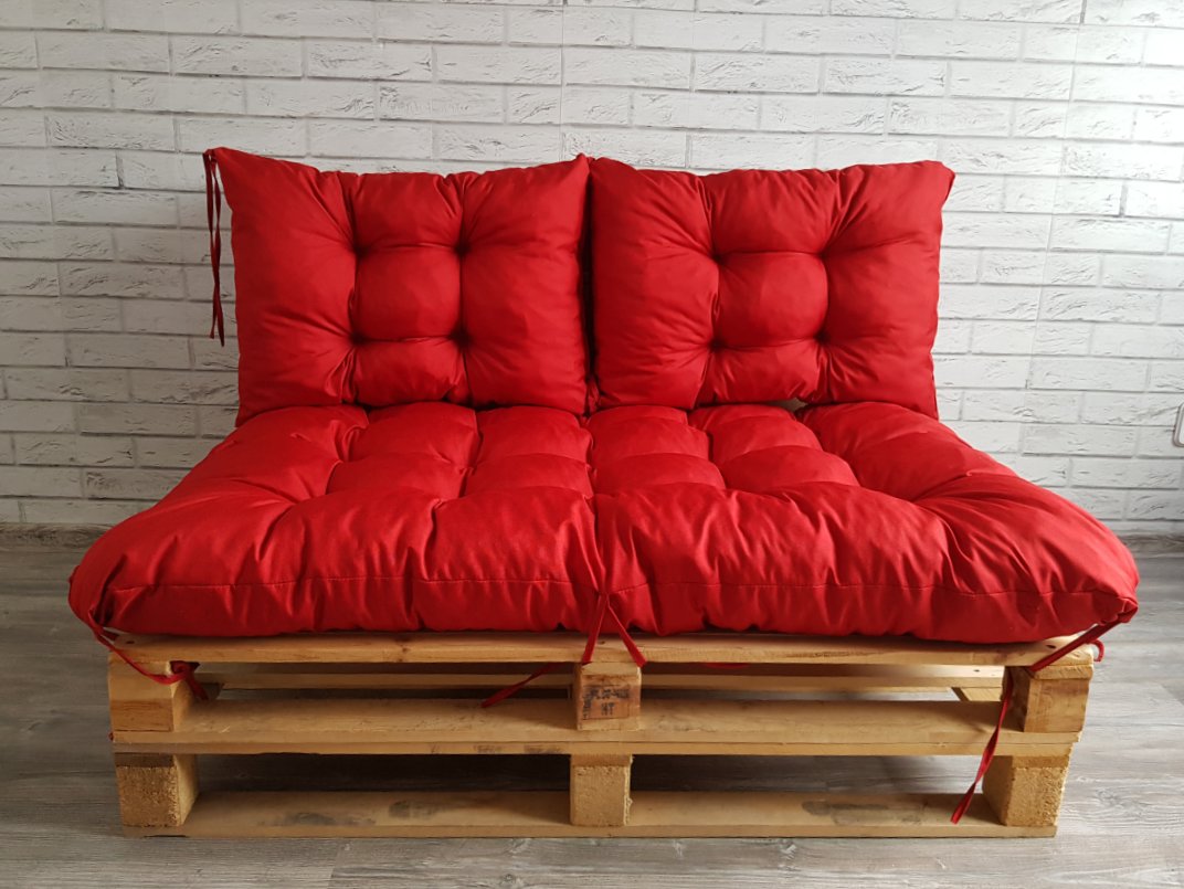 Paletové prošívané sezení MATTEO SET - sedák 120x80 cm, 2x opěrka 60x40 cm, barva červená, Mybesthome