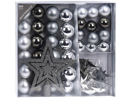Ozdoba świąteczna (bombki, szpic, dekoracje) zestaw 45-częściowy, srebrny, antracyt. przeczytaj całość