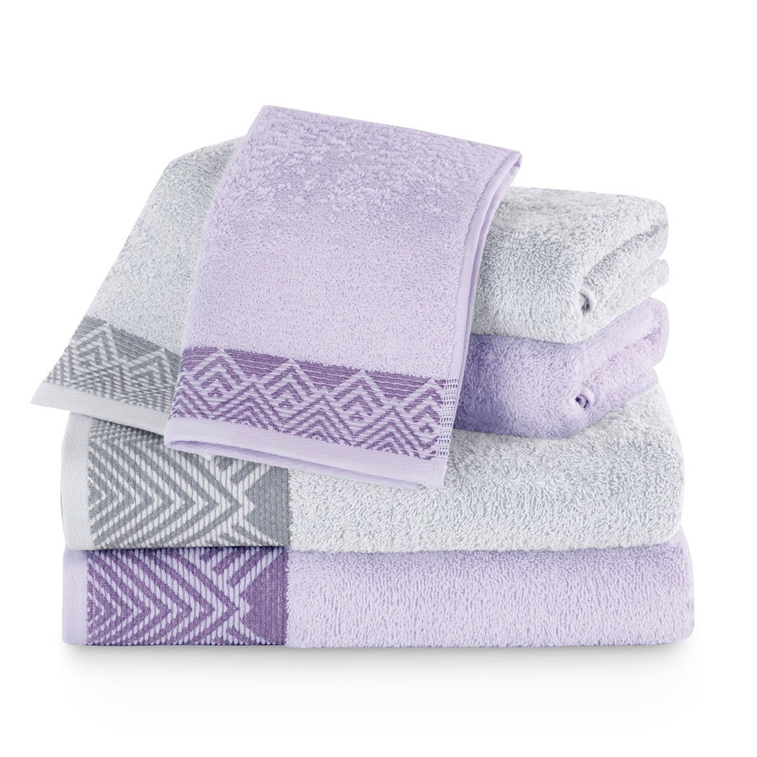 Dárkový set 6 ks ručníků 100% bavlna AREDO 2x ručník 50x100 cm, 2x osuška 70x140 cm a 2x ručník 30x50 cm lila/šedá 460 gr Mybesthome