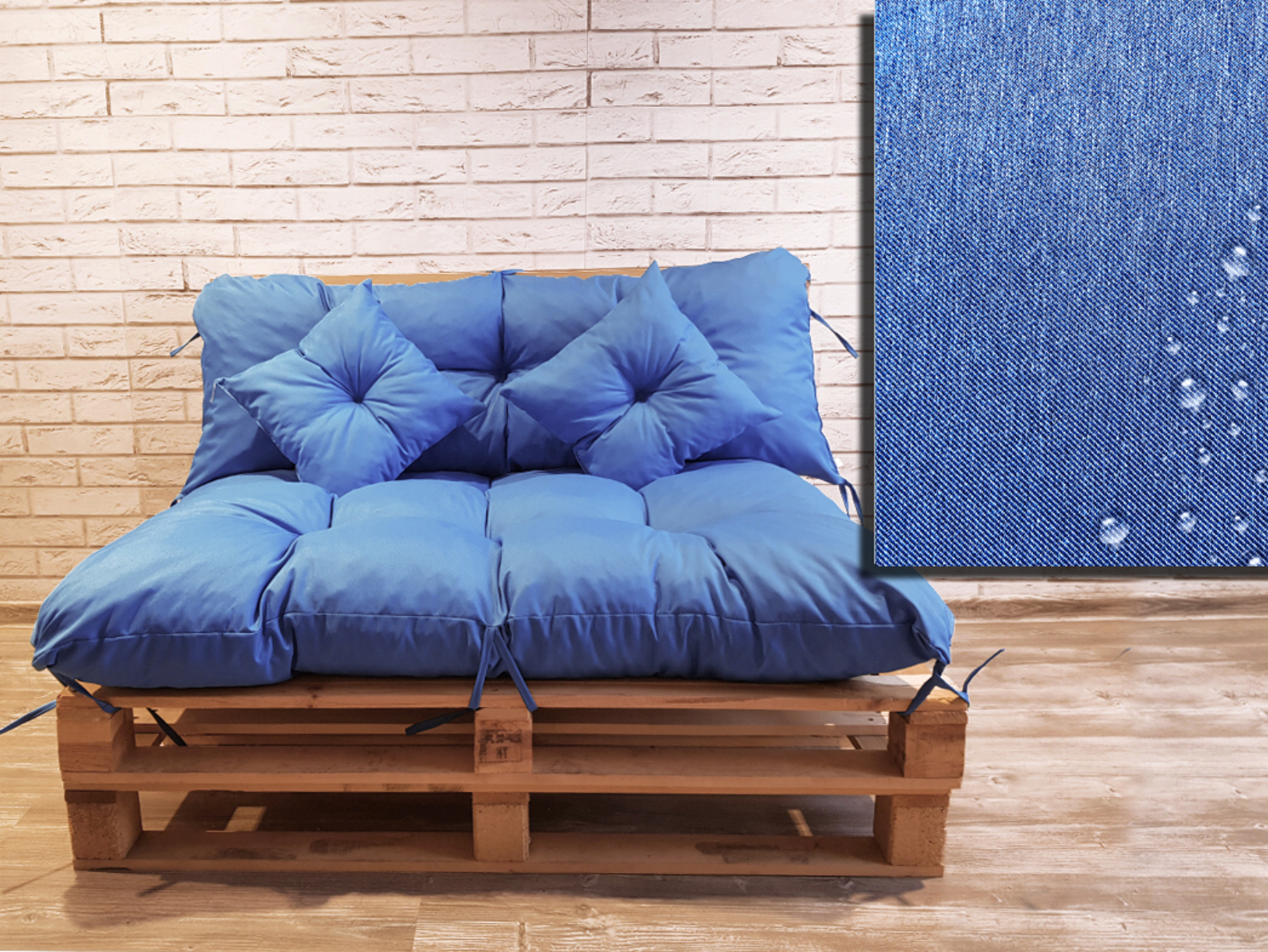 Polstr DENIM CARLOS SET - sedák 120x80 cm, opěrka 120x40 cm, 2x polštáře 30x30 cm, světle modrá, paletové prošívané sezení Mybesthome