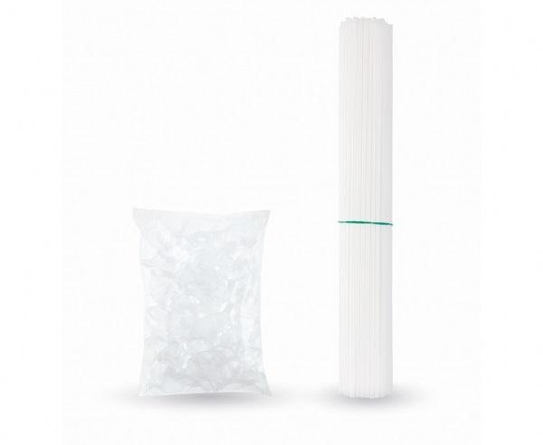 Patyczek z zatyczką 100sztBiałe plastikowe patyki wraz z zatyczkami (koszyczkami) przeznaczone do mocowania balonów foliowych i gumowych o długości ok. 38 cm przeczytaj całość