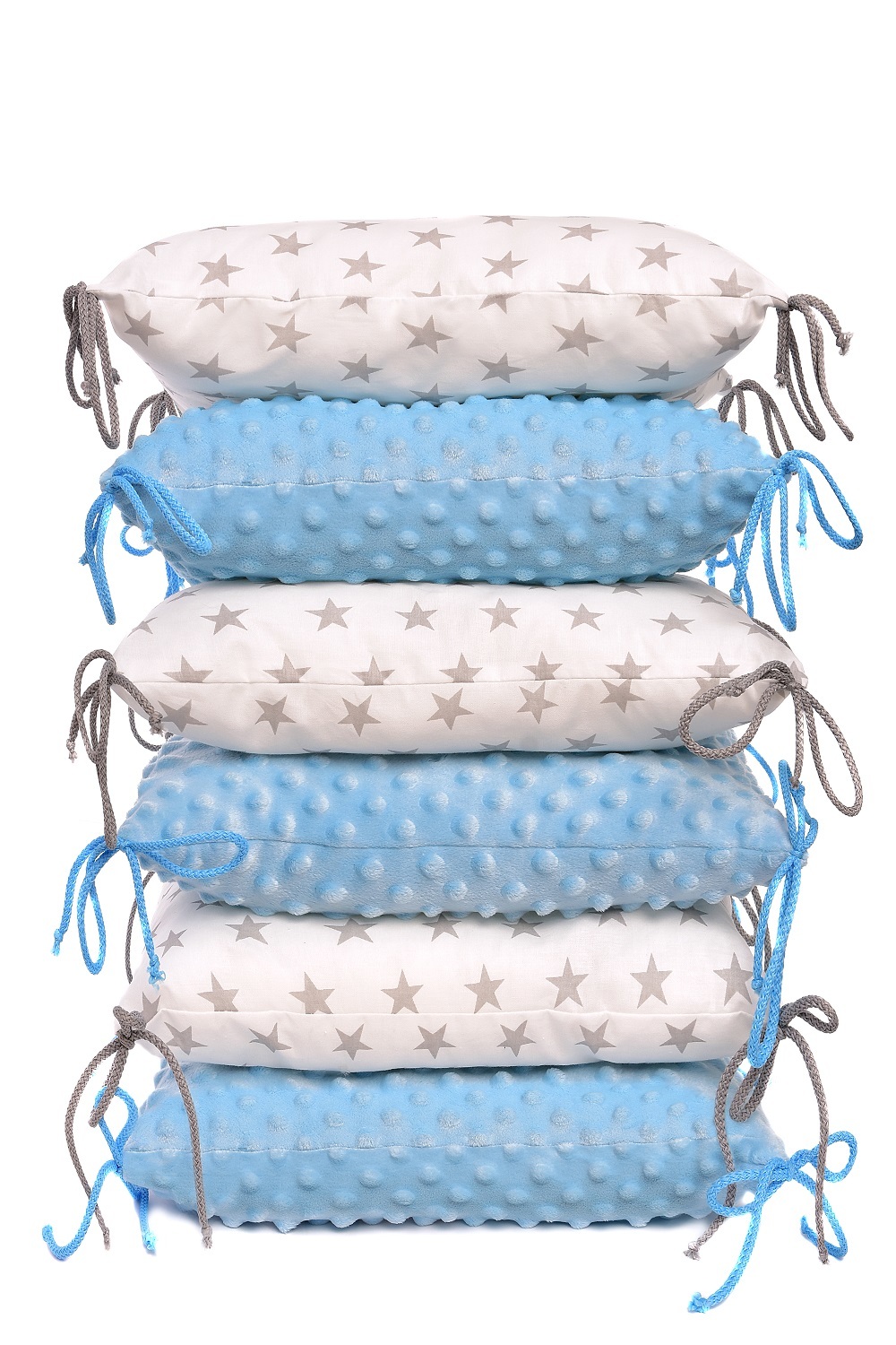 Polštářkový mantinel T-TOMI tvořený 6 kusy jednotlivých polštářků o velikosti 35 x 35 cm vyrobený ze 100% bavlny a z jemného, hřejivého a luxusního materiálu MINKY (3+3). Polštářky T-TOMI lze uvázat po boční straně postýlky a poskytnou tak Vašemu děťátku ochranu, pohodlí a bezpečí zároveň....