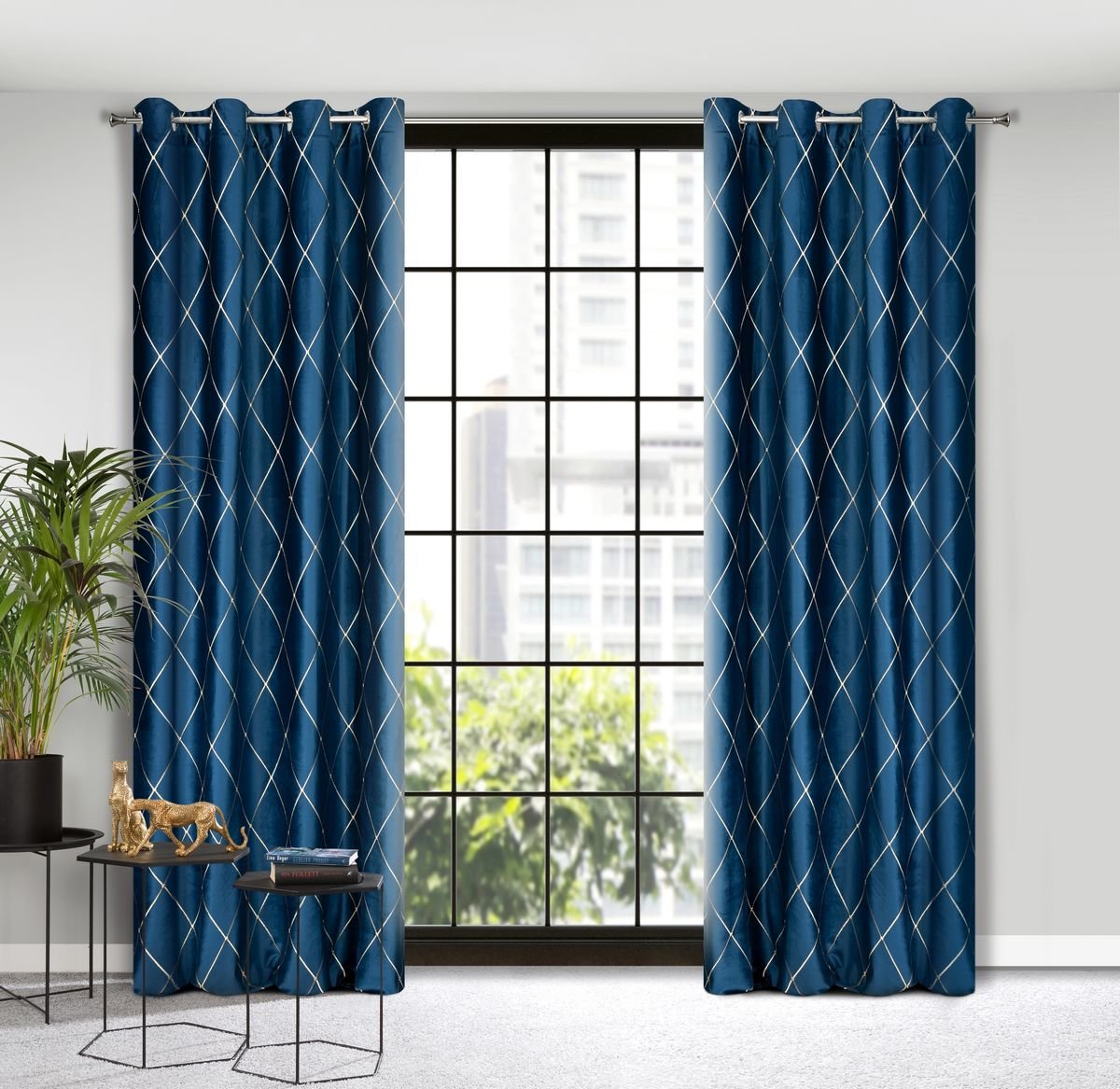Dekorační vzorovaný velvet závěs PIERRE CARDIN - MARGOT modrá 140x250 cm (cena za 1 kus) MyBestHome
