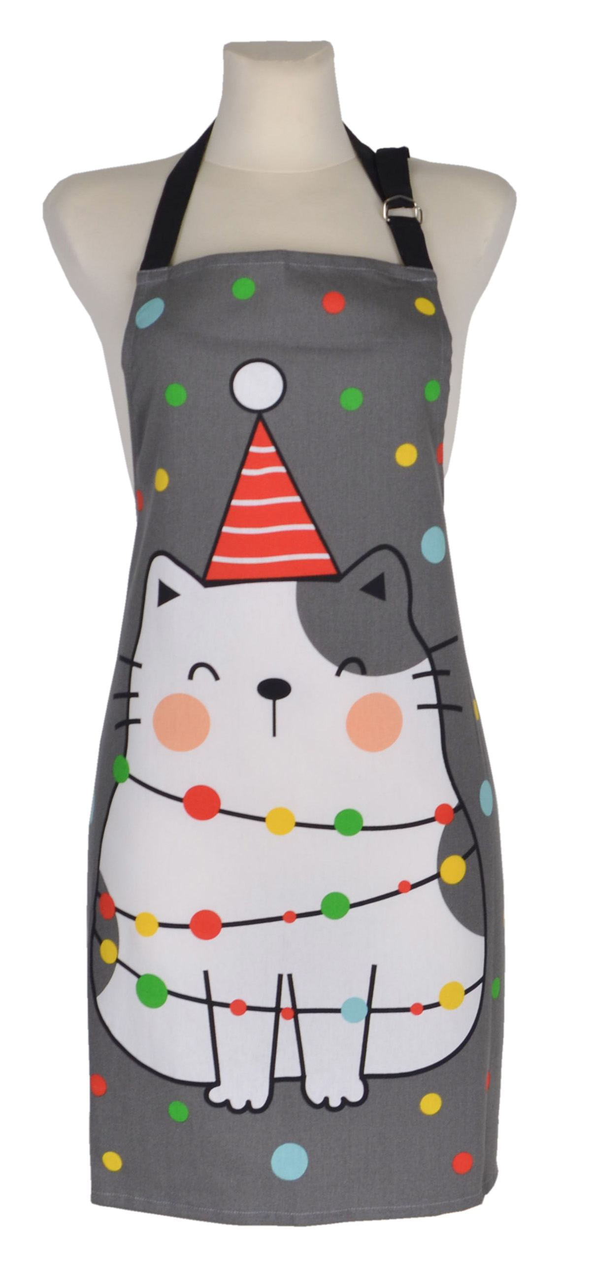 Bawełniane fartuchy kuchenne z oryginalnym motywem. Fartuch posiada metalowe oczko umożliwiające regulację długości w zależności od sylwetki.