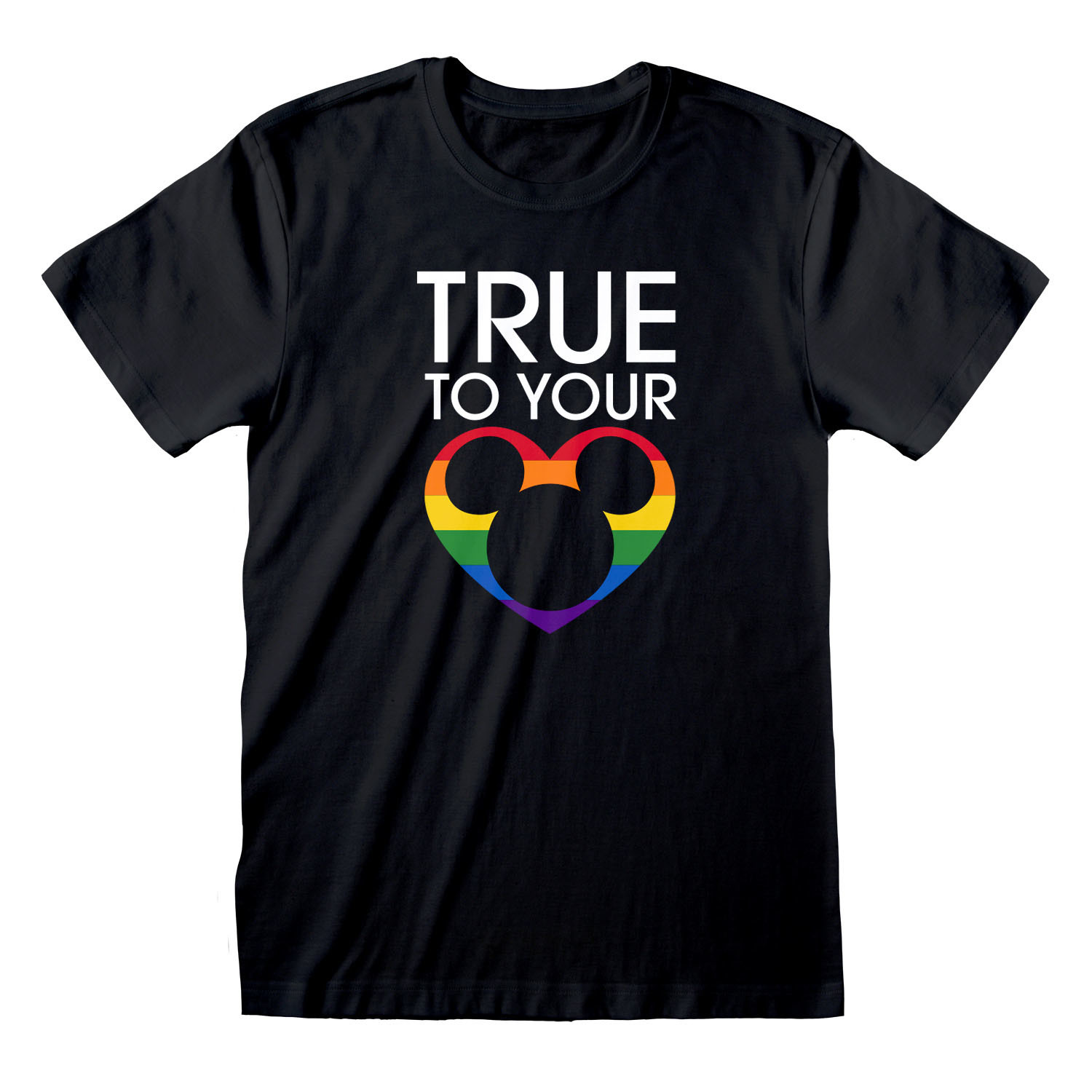 Oficiální tričko a fashion zboží z katalogu produktů s licencí americké společnosti Disney.Zboží je legálně licencováno a prodáváno se souhlasem vlastníků licenčních práv.Černé pánské tričko inspirované siluetou kreslené postavičky Mickey Mouse a nápisem True To Your Heart.Velikost trička: pánské...