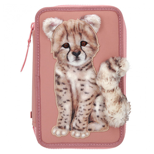 Penál s výbavou Top Model, Starorůžová s gepardem, třípatrový | 20 x 13 x 7 cm | 0411219_A