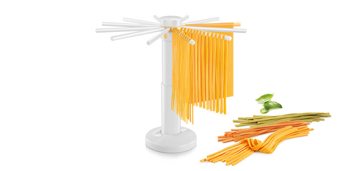 Otočný stojan s 12 rameny vynikající pro odkládání plátů těsta a sušení domácích špaget, tagliolini, fettuccine, nudlí apod. Vyrobeno z odolného plastu. 3 roky záruka. przeczytaj całość
