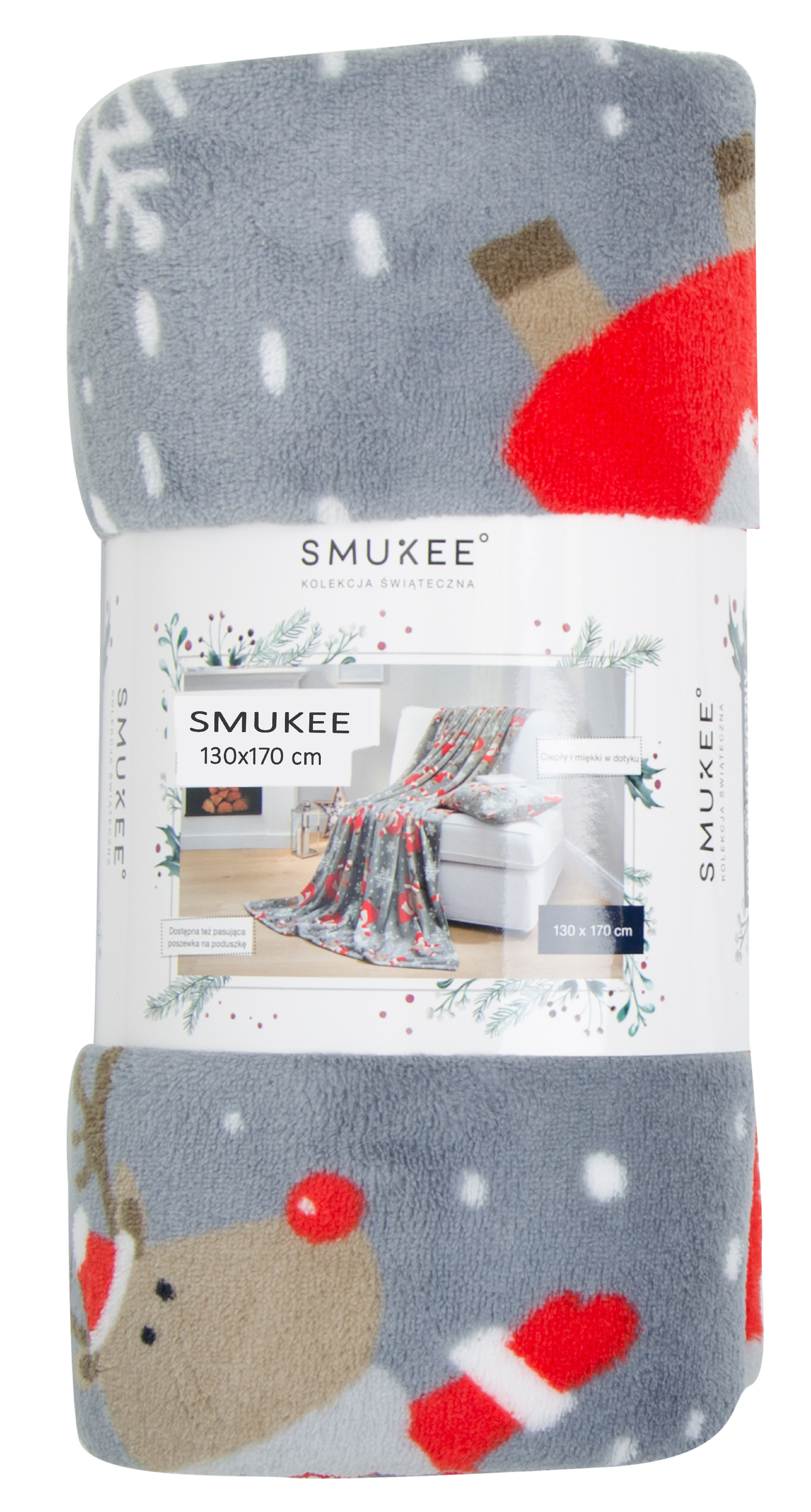 Deka z mikrovlákna SMUKEE šedá vzor sobík 130x170 cm Essex