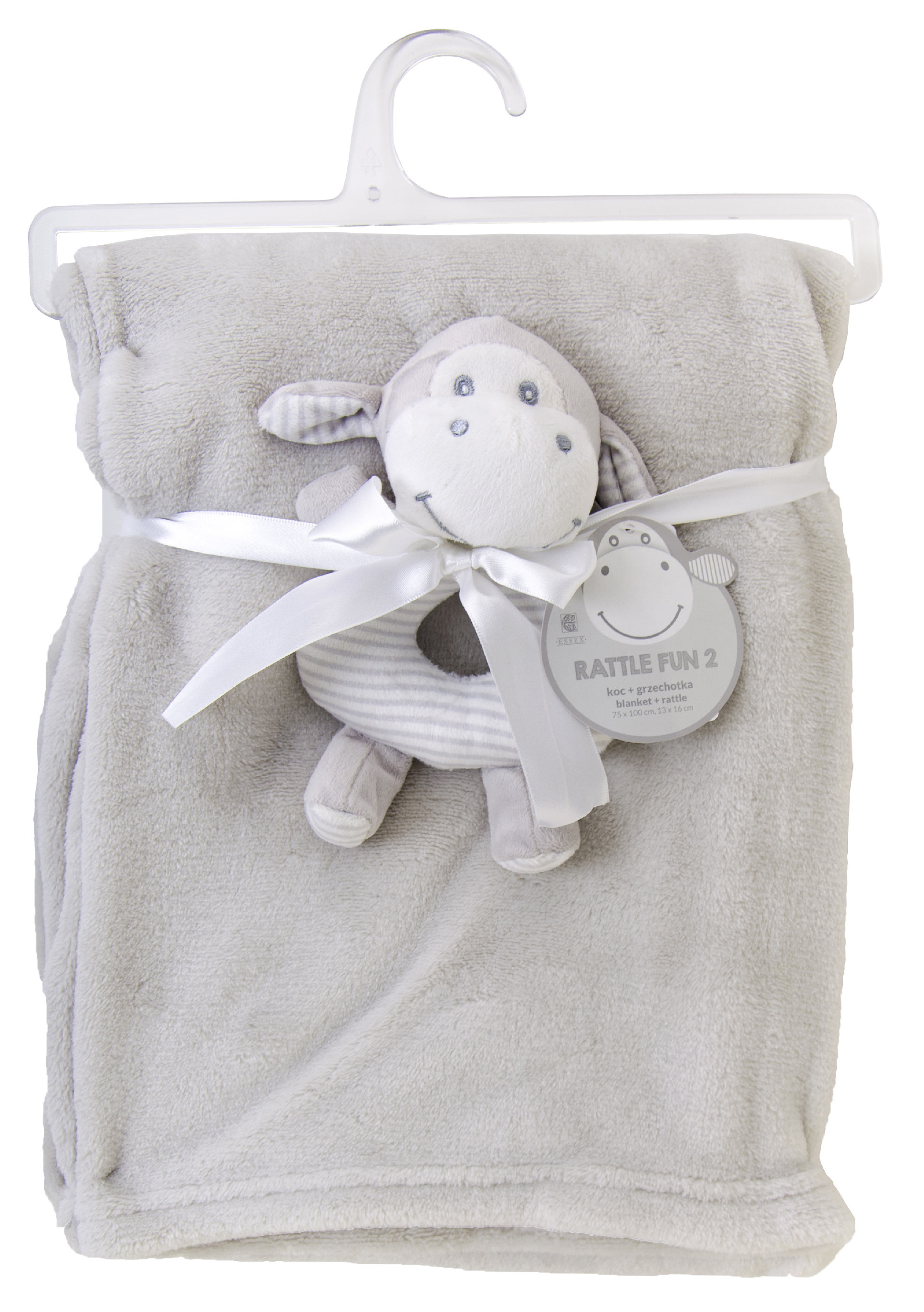 Dětská deka s chrastítkem oslík RATTLE FUN stříbrná 75x100 cm Essex