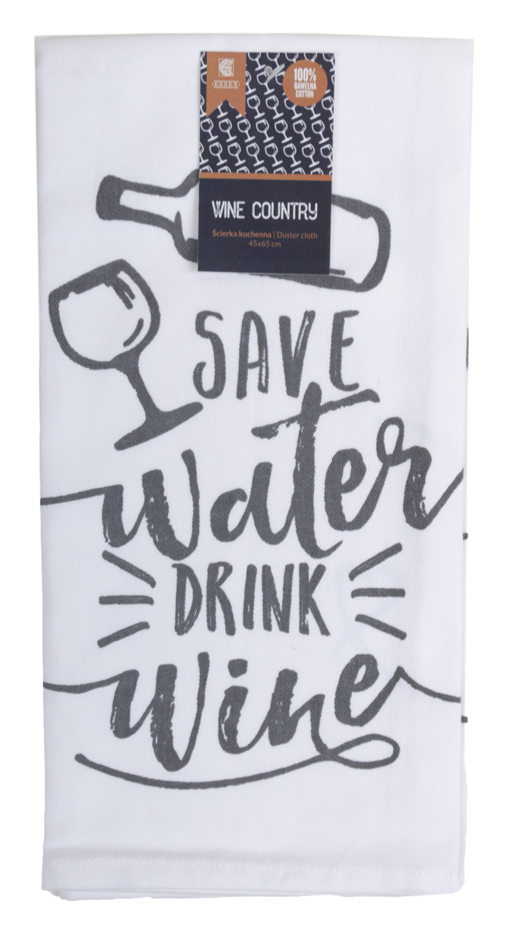 Utěrka WINE COUNTRY šedá/bílá 100% bavlna, 45x65 cm Essex
