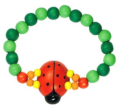 Dziecięca biżuteria z drewnianych koralików nawleczonych na gumce. Długość bransoletki wynosi ok. 70 mm. Nieodpowiednie dla dzieci do 3 lat. Zawiera małe elementy. Produkt jest bezpieczny dla zdrowia. przeczytaj całość