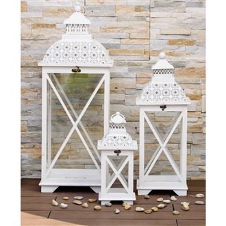 Krásná sada luceren.Sada obsahuje tři lucerny.Vneste do svého domova či zahrady kouzlo orientální stylu. Tyto lucerny jsou vyrobeny ze dřeva a skleněných panelů, horní část je z kovu. Mají praktickou rukojeť, která vám usnadní jejich přenášení mezi domem a zahradou.Lucerna malá má rozměry 16 x 16...