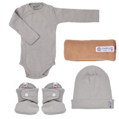 Dárkový set skládá se z: body s dlouhým rukávem, čepičky, capáčků a plenky je balen v dárkové krabičce a je ideální jako dárek k narození miminkaHydrofilní body s dlouhými rukávy vyrobeno z hydrofilní waflové bavlny, díky které je krásně savé, prodyšné a opravdu jemné skvělý střih, který dítě...