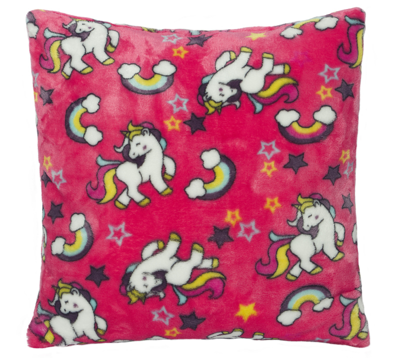 Polštářek Mazlík - dětský motiv - jendorožec s duhou na růžové - 38x38cm