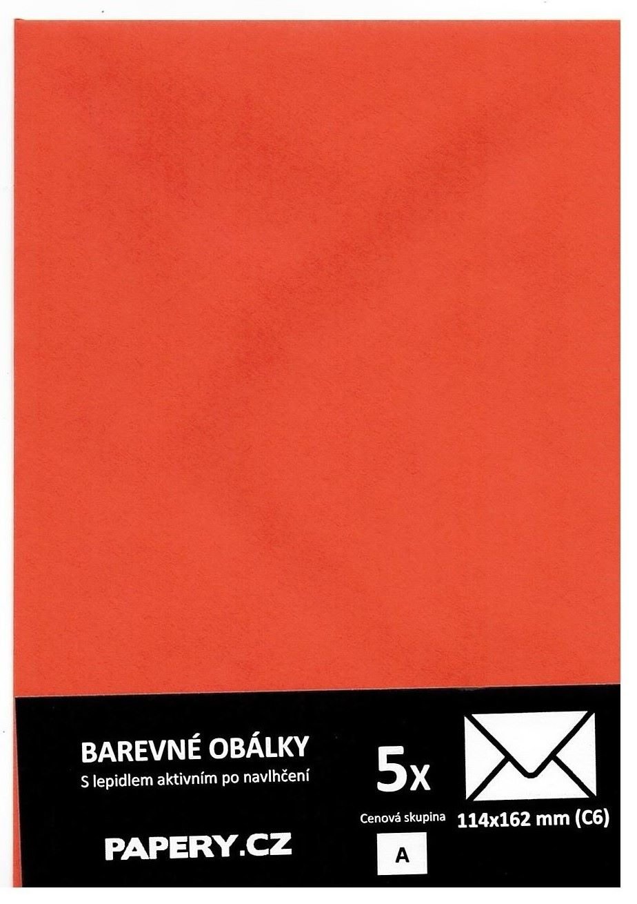 barevná obálka 114X162 ORANŽOVÁ, 5 kusů, 100 gm2, olizová