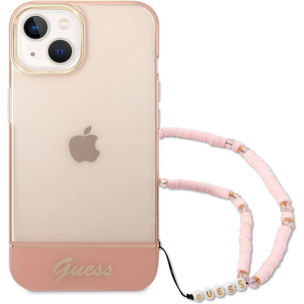 Guess PC/TPU Camera Outline Translucent kryt s poutkem iPhone 14 růžový