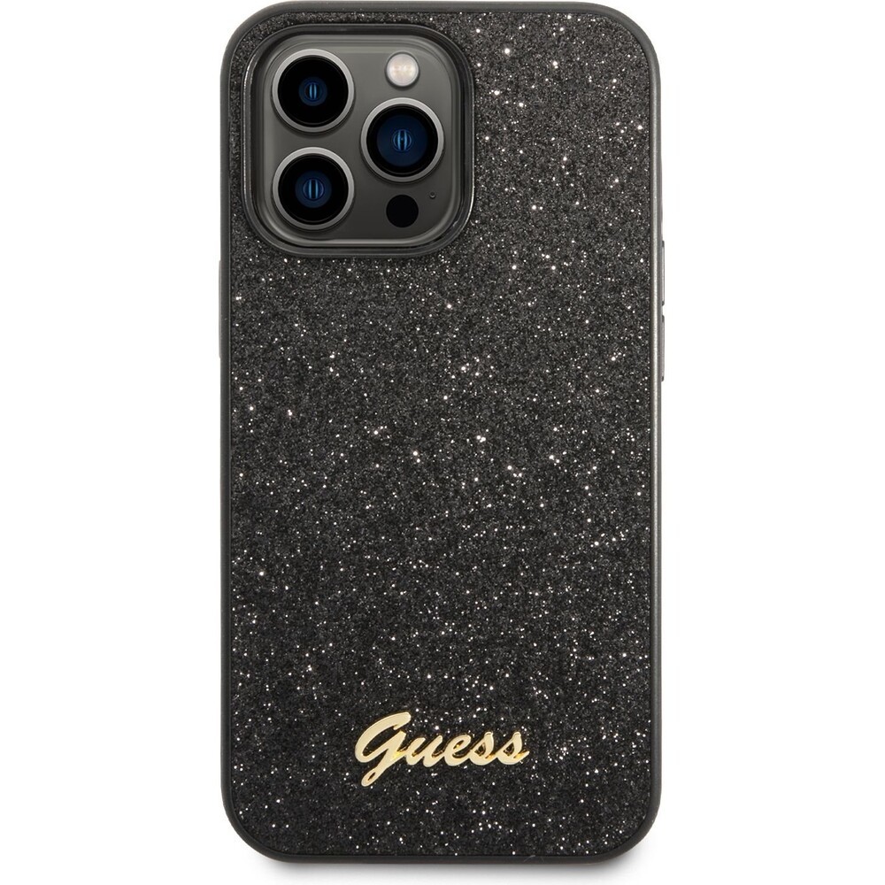 Guess PC/TPU Glitter Flakes Metal Logo kryt iPhone 14 Pro černý