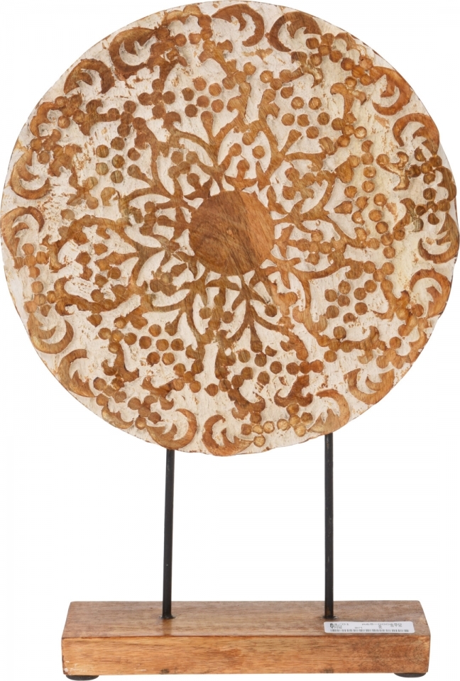 Dřevěná dekorace na podstavci v podobě mandaly.Materiál: mangové dřevoRozměry:výška 38 cmšířka 25 cmhloubka 6,5 cm przeczytaj całość